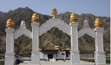百靈廟位于內(nèi)蒙古自治區(qū)包頭市達(dá)爾罕茂明安聯(lián)合旗政府所在地。建于康熙四十二年(公元1702年)。百靈廟系達(dá)爾罕貝勒廟的轉(zhuǎn)音,亦稱烏力吉套海(吉祥灣)召?gòu)R群。廟宇由5座大殿、9頂佛塔和36處藏式結(jié)構(gòu)的院落組成,總占地面積約8000多平方米。各處殿塔雕梁畫(huà)棟、廊柱林立,墻壁上彩繪著佛經(jīng)里的人物故事,造型生動(dòng),構(gòu)圖細(xì)膩。清康熙皇帝御賜“廣福寺”牌匾懸掛于大佛殿正門上方。