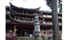 峨眉山圣水禪院原名神水庵、神水閣,有五重殿宇,全寺的殿堂和附屬房屋全系木制結(jié)構(gòu)。禪院原為明代安慶巡撫吳用先的舊居,因周圍“修竹萬竿”,有“水竹色相繞,碧花動軒楹”(唐,孟郊 《旅次洛城東水亭》)的意境,取名“水竹居”。明萬歷末年(約公元1619年),因水竹居前有“玉液”神水,遂改宅為寺,名“神水庵”。寺院前有一塔,傳為隋代智者大師衣缽塔。
