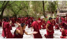 哲蚌寺,坐落在拉薩市西郊約十公里的根培烏孜山南坡的坳里,是黃教創(chuàng)始人宗喀巴的弟子降央曲吉-扎西班丹于公元1416年創(chuàng)建。解放前該寺僧眾超過一萬人,擁有141個莊園與540多個牧場,是藏傳佛教最大的寺廟。