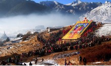 甘丹寺(藏文: 威利: Dga'-ldan; 藏文拼音: Gandain),位于拉薩達孜縣境內(nèi)拉薩河南岸海拔3800米的旺波日山上,距拉薩57公里。是黃教六大寺中地位最特殊的一座寺廟,它是由佛教格魯派的創(chuàng)始人宗喀巴于1409年親自籌建的,可以說是格魯派的祖寺,與哲蚌寺、色拉寺合稱拉薩“三大寺”,清世宗曾賜名為永壽寺。寺院全稱“甘丹朗杰林”,甘丹是藏語音譯,其意為“兜率天”,這是未來佛彌勒所教化的世界。宗喀巴的法座繼承人,歷世格魯派教主甘丹赤巴即居于此寺。