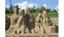 《印象普陀》選址在朱家尖原觀音文化苑。朱家尖歷史上為普陀山的廟宇地,是觀音道場(chǎng)的重要組成部分。相傳觀音大士正是由佛渡島跳至普陀山,至今在山頂還留有一個(gè)碩大的腳印,與普陀山正好配成對(duì)。目前印象普陀劇場(chǎng)所在地為朱家尖最重要的景區(qū)之一,其間一座高114.9米的干丈崖上彩繪的一尊觀音大立像壁畫高69米,面積達(dá)2000平方米。而此次演出觀眾就將在此親見這個(gè)“海上莫高窟”。
