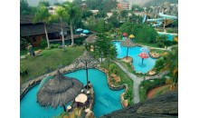 度假村四周群山起伏,層巒疊翠,風光秀麗,景色迷人,充滿大自然的野趣。度假村占地面積100多畝,地下熱源達5平方公里。露天泉涌100多處,月流量近10萬立方米,其中一個泉眼,每小時流量60立方米。該度假村的溫泉水溫最高達80度以上,可將雞蛋燙熟,所以在諸多泉池里有個湯雞蛋小池,讓你可以邊泡溫泉邊剝燙熟的雞蛋來吃。溫泉水用作健身理療治病,在我國有近千年的歷史。