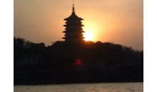 雷峰夕照西湖十景之七,雷峰夕照,位于西湖湖南、凈慈寺前的夕照山上,因晚霞鍍塔,佛光普照而聞名。雷峰塔建于五代(975),是吳越國(guó)王錢(qián)弘俶為慶祝黃妃得子而建,初名黃妃塔。因建在當(dāng)時(shí)的西關(guān)外,故又稱為西關(guān)磚塔。原擬建十三層,后因財(cái)力所限,只造了五層。明代嘉靖時(shí),倭寇入侵,疑心塔內(nèi)有伏兵,縱火焚塔,僅存塔心。