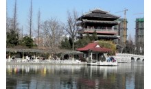 逍遙津公園景色優(yōu)美,文化內(nèi)涵豐富,而且園內(nèi)廣植各種奇花名木。據(jù)調(diào)查,全園植物品種多達(dá)180余種,各種樹木10257株,其中百年樹齡以上的古樹名木有麻櫟、側(cè)柏、檜柏、銀杏、白皮松等多棵。生長在北津橋東50米處的一棵麻櫟,高17.2米,胸徑50厘米,東西冠徑達(dá)16米,蔭蔽面積足有4間屋子那么大。
