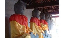 于臨淄區(qū)高陽鄉(xiāng)南高陽村東南側(cè)。石佛與寺院始建于公元520年(北魏孝明帝正光元年),寺院已廢多年,僅存石佛2尊,坐落在寺墟土臺之上。臺高1.5米,南北長15米,東西寬20米,兩佛間距12米,東西排列,均面南結(jié)跏趺坐于束腰蓮座上,通高2米。頭飾螺髻,身披袈裟,袒右肩,內(nèi)著僧祗支,赤足,手施無畏與愿印。蓮座上刻有浮雕力士像。手部、面部、須彌座均有殘損。