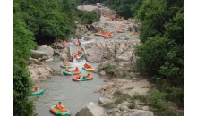 臺(tái)山北峰山漂流位于古兜山省級(jí)自然保護(hù)區(qū)內(nèi),省級(jí)森林公園原始峽谷之中,漂流河段全程4公里,需時(shí)1時(shí)20分鐘。自然保護(hù)區(qū)內(nèi)茂密的原始森林和天然峽谷賦予北峰山漂流與眾不同的特色,集瀑布、深潭、奇石、密林、珍稀動(dòng)植物、沙灘于一身,在全省獨(dú)樹一幟,自然景色之美令人為之驚嘆。全程80多米的落差,密林之下,瀑布飛舟,在峽谷中穿石繞壁,凌波逐浪,融逍遙漂與勇士漂于一體。