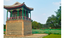 南山積雪亭位于山莊正北、青楓綠嶼南側(cè)的山頂上,是一處借景之作,為“康熙三十六景”第十三景。是山莊的制高點(diǎn)之一。 南山積雪亭為方形四角攢尖式敞亭,面積較大,在此可一覽眾峰?!澳仙椒e雪”是觀賞山莊初冬雪景為命題的一組苑景。塞北高寒,山莊之南,峰嶺環(huán)列,嶺上積雪經(jīng)久不消。登亭遙望,群山上的積雪“皓潔凝映,晴日朝鮮,瓊瑤失素”。直到初春時(shí)節(jié),仍是“不改冰霜積雪冬”的景象。
