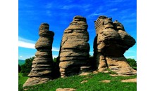 阿斯哈圖石林屬第四紀冰川遺跡,經(jīng)過幾百萬年風(fēng)沙雕琢,鑲嵌在遼闊大草原上,背靠著一望無際的樺樹林海。遠望花崗巖石林猶如遠古先人建造的城堡,平地突起,崢嶸險峻,滄桑破敗,有如千神駿馬,昂揚頓丹、奔入眼底;近品石林,千姿百媚,如塔、如筍、如人、如門,如人工刻意雕琢;平衡石呼之欲來,飛來石趨之欲動;十八羅漢,九仙女,桃園三結(jié)義,栩栩如生,使人驚嘆大自然的鬼斧神工,堪稱世界奇觀。